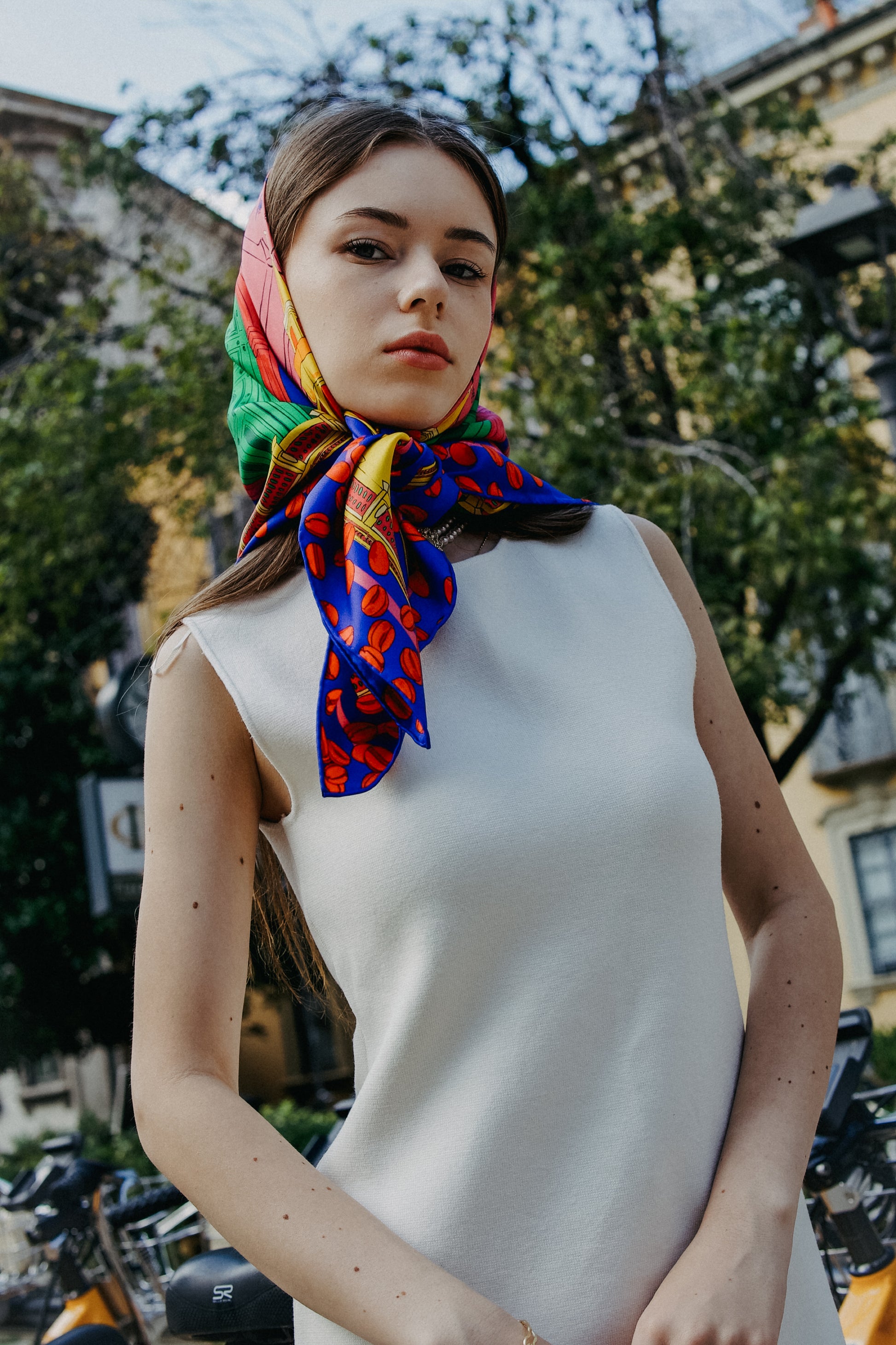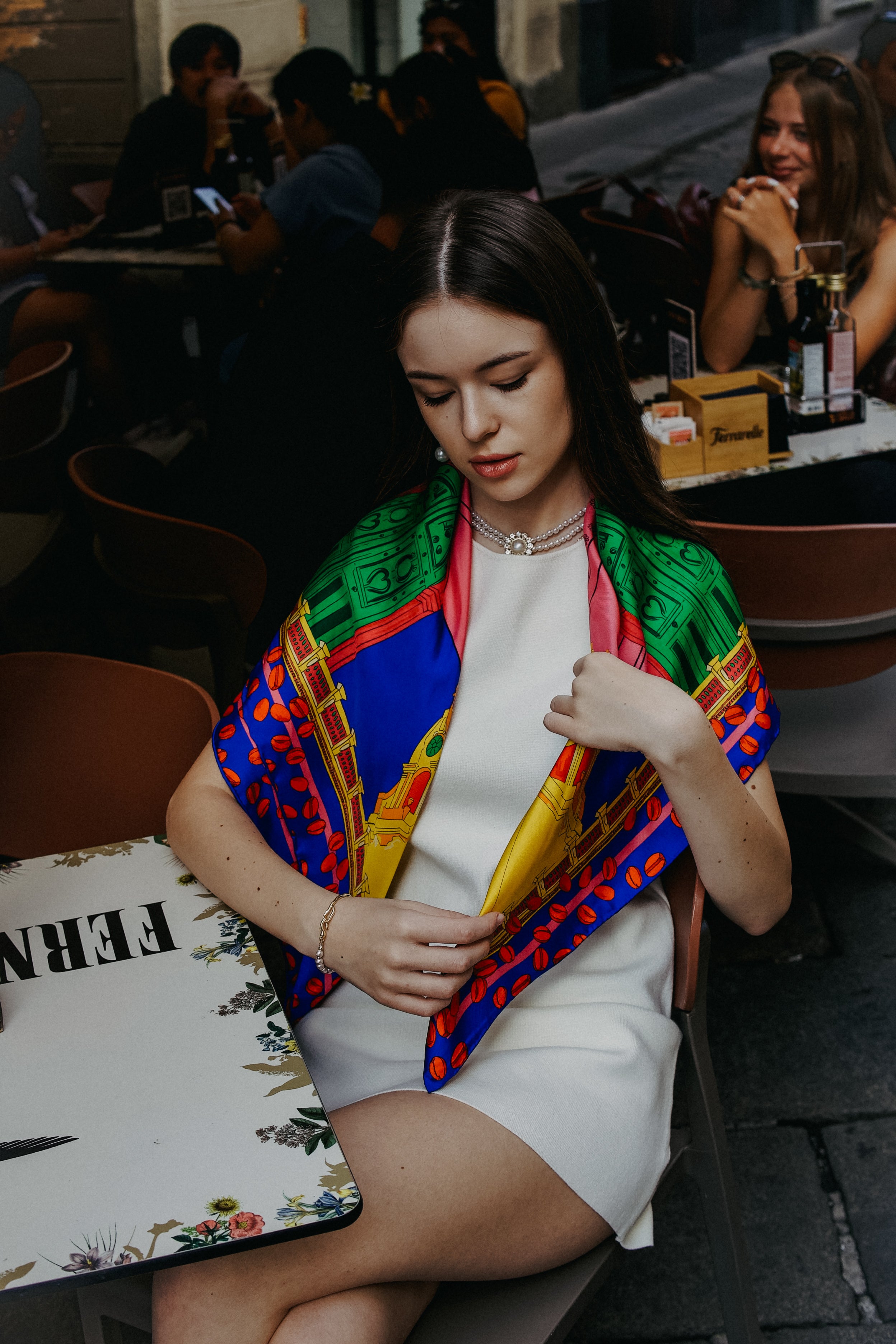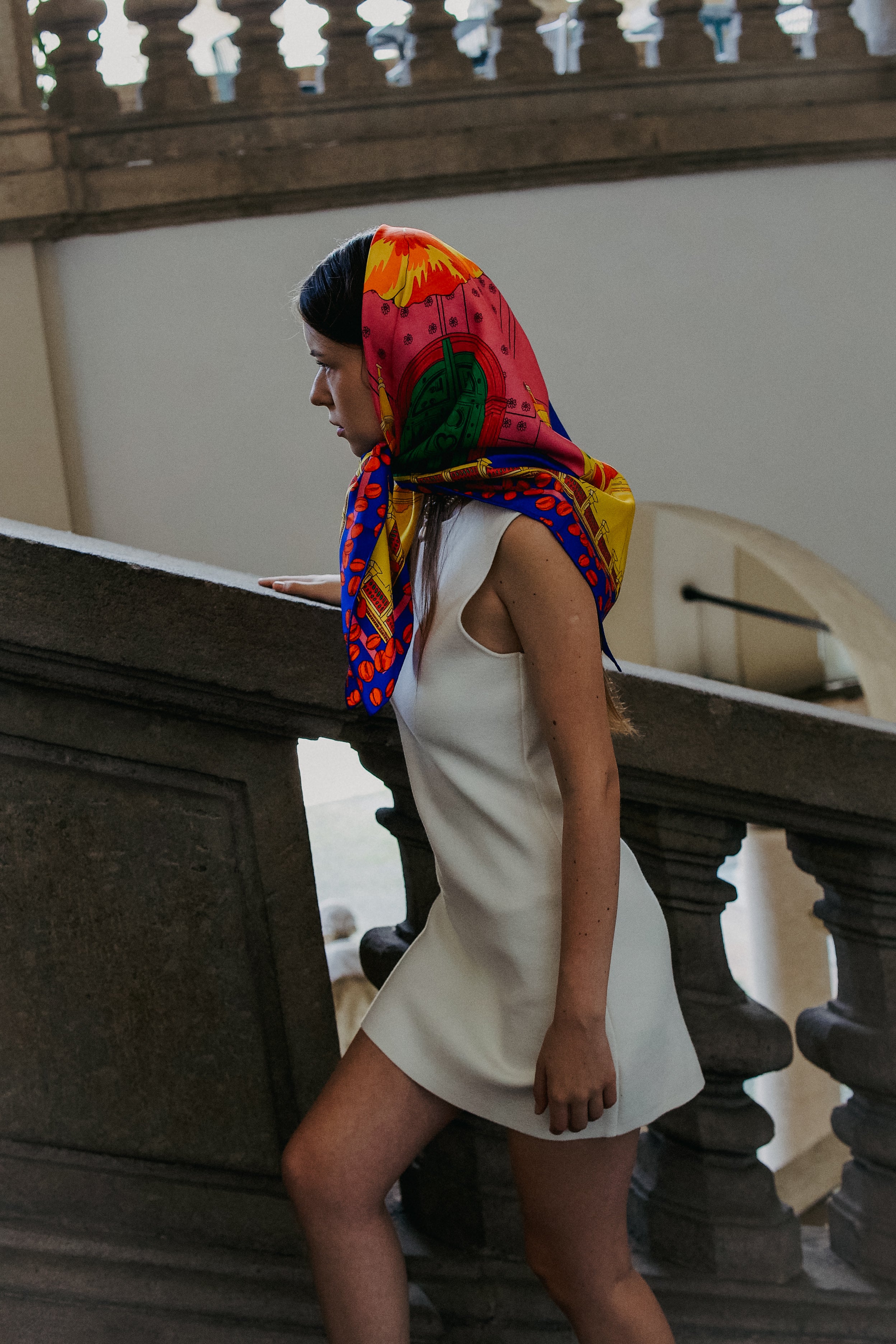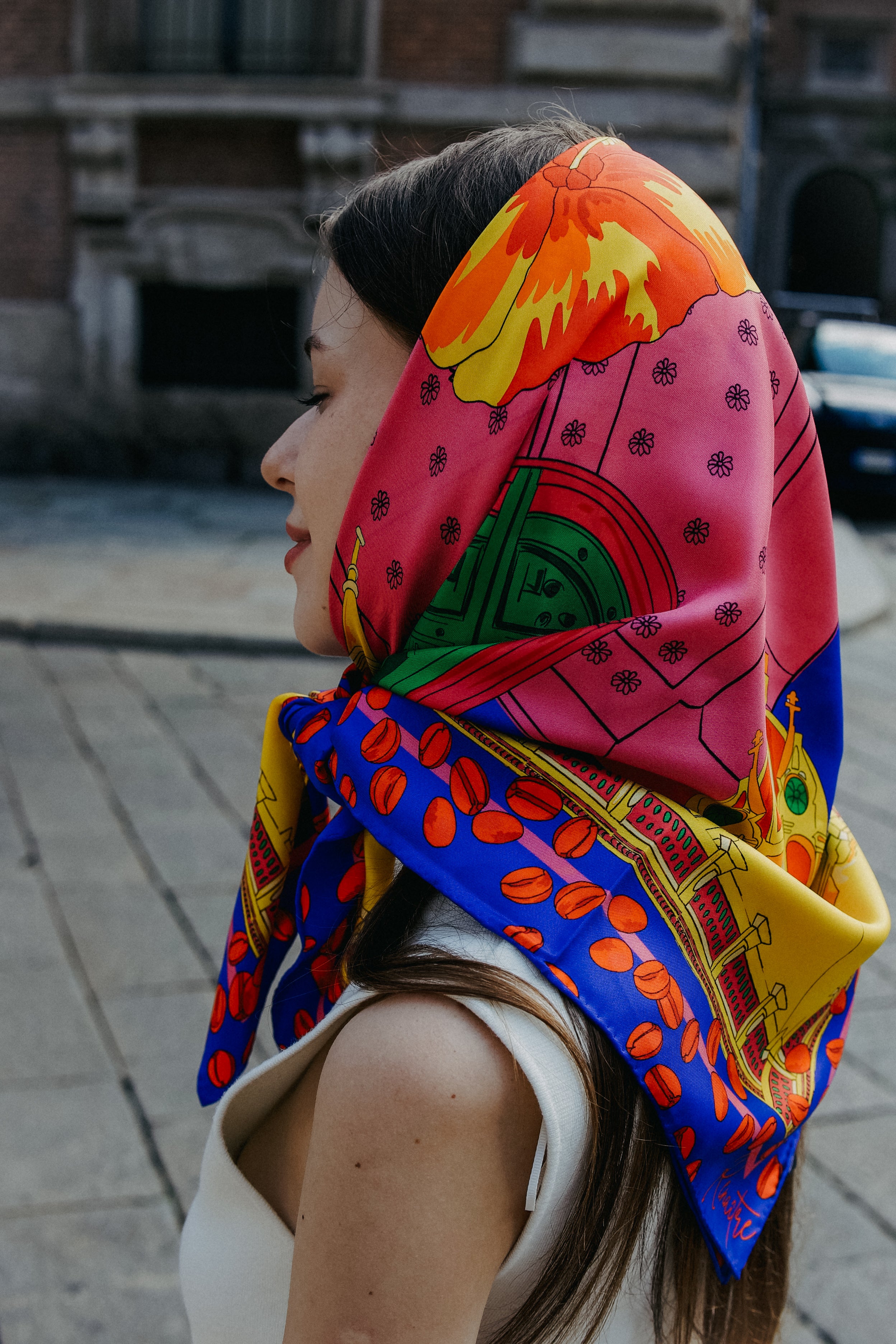 Every fold a memory - 100% Mulberry silk twill, double-sided, hand-rolled, inspired by the city of Cartagena.